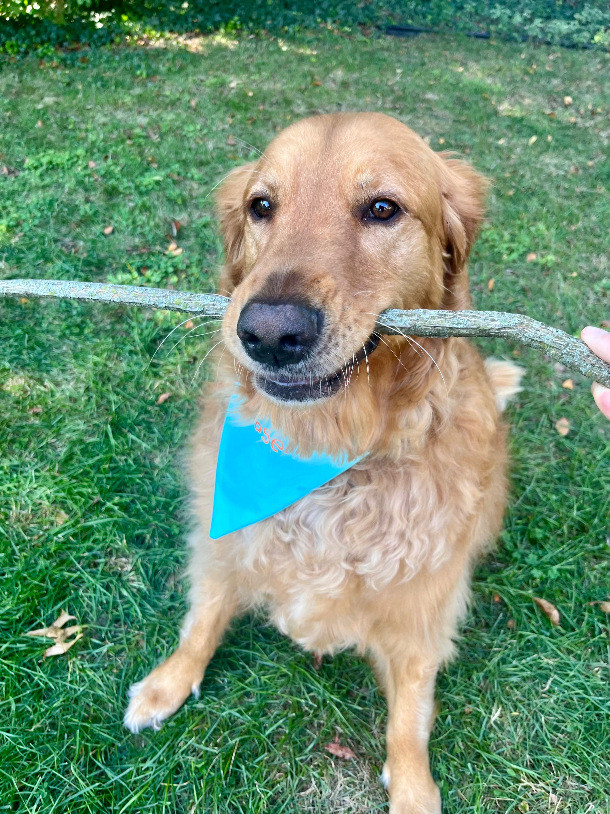 Perfect for the lover of sticks! Tree Branch Manager is a very important position. Blue bandana with navy blue text and blue adjustable strap.