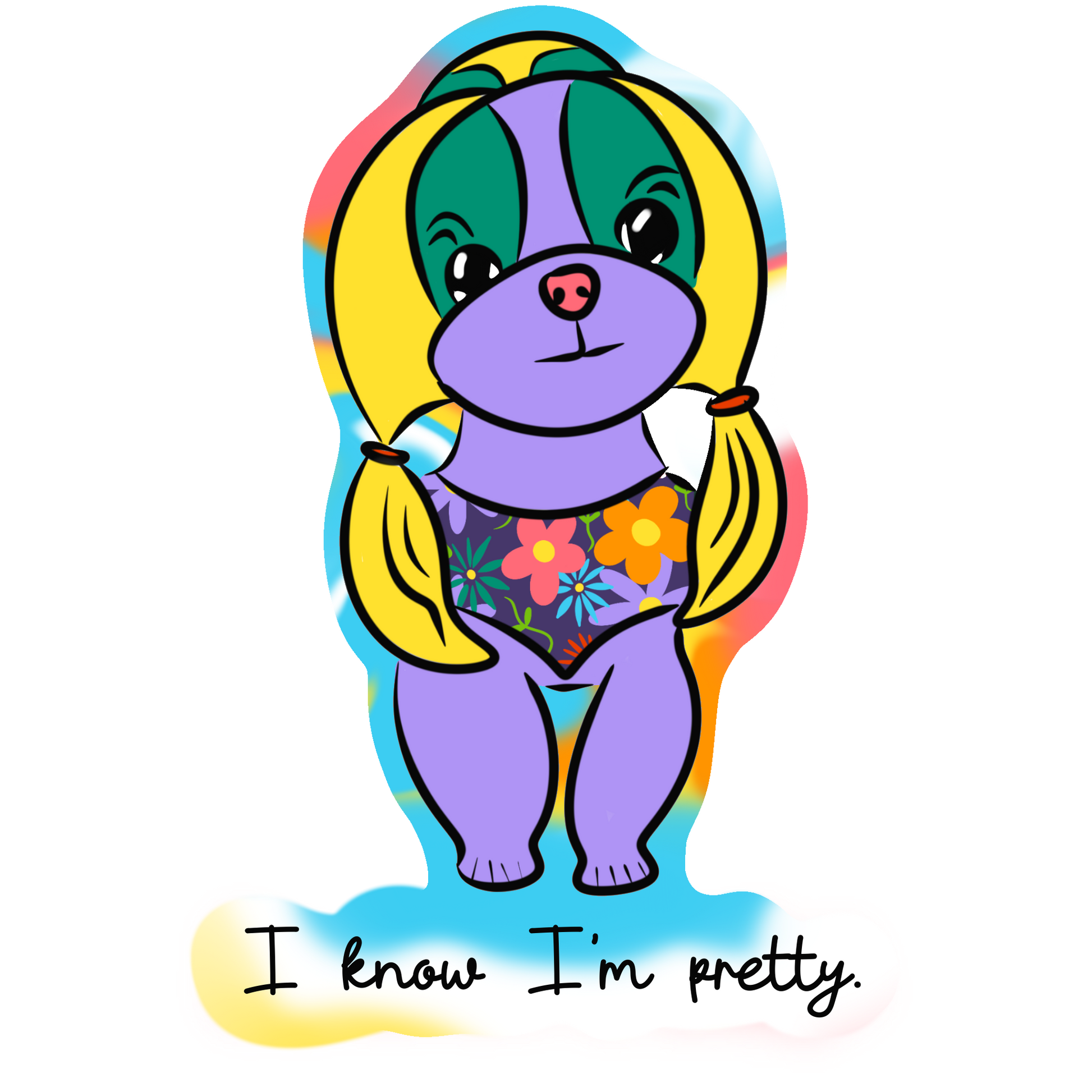 This one is for your pretty pretty princess. This dog is absolutely gorgeous and they know it, so get them a "i know i'm pretty" Sticker! It has a glossy finish and is perfect for your bathroom mirror or car window. Don't miss out on this one-of-a-kind sticker!